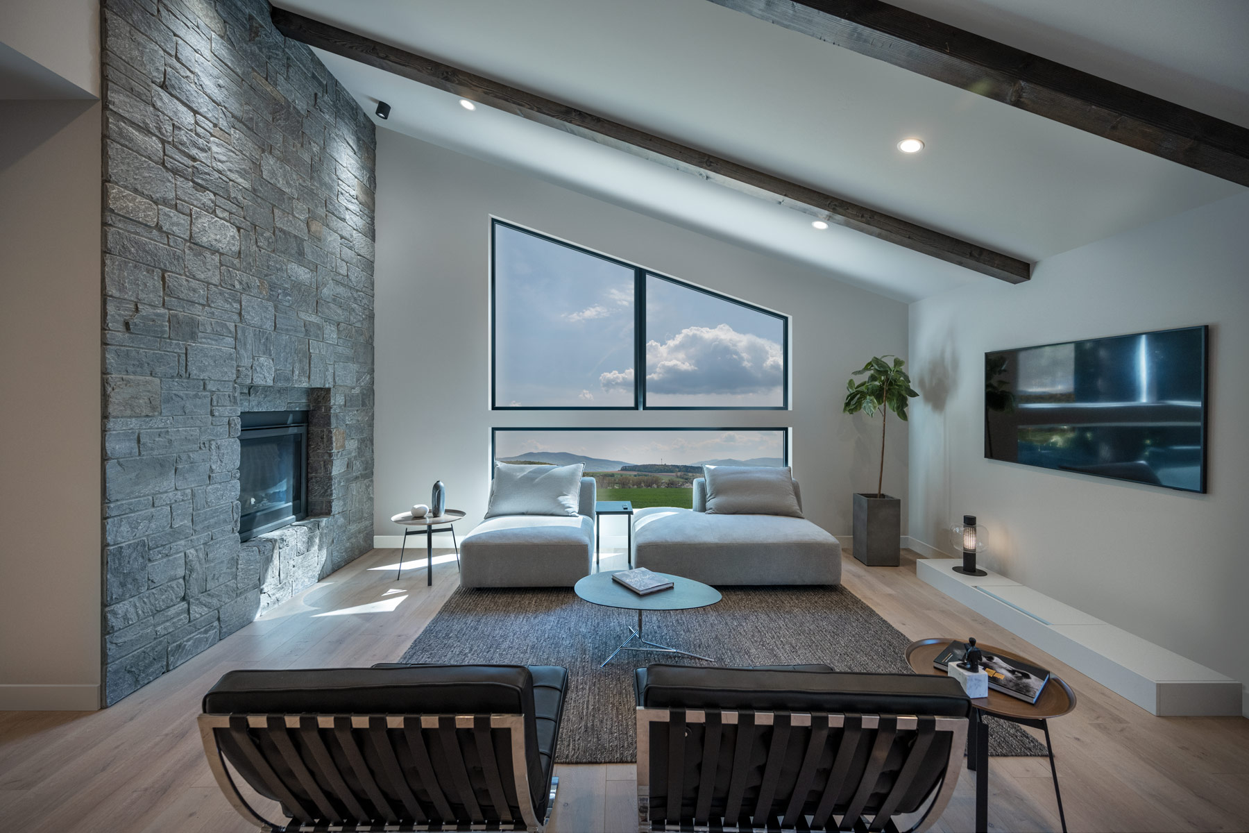 Hazel 9.0 model Classic Mid-Century Modern style. This home features modern kitchen cabinets and a large island with quartz countertops. The Great room features a fireplace which creates irresistible coziness and warmth. Relax in the inviting master suite you can enjoy the sunrise every morning from the expansive sliding doors and a cup of coffee on the private balcony. Our Modern designs capture the spirit of fine architecture, which results in truly unique homes.